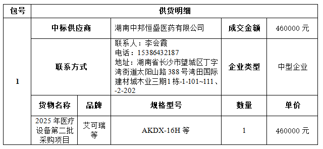 南华大学附属第二医院的2025年医疗设备第二批采购项目公开招标采购于2025年09月12日结束,现将中标(成交)结果公告如下:
