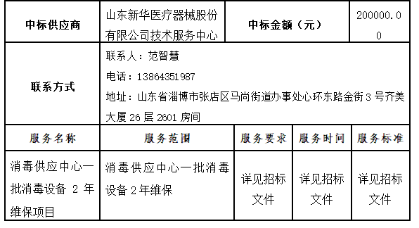 消毒供应中心一批消毒设备2年维保项目中标公告