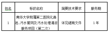 项目名称:南华大学附属第二医院化粪池、污水管网及污水处理清淤服务项目(第二次)