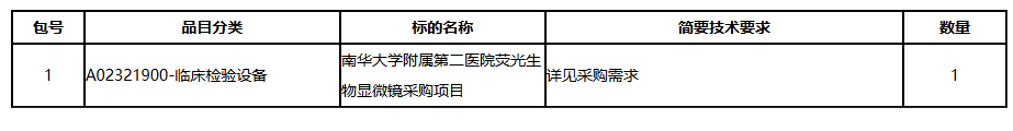 采购项目名称:南华大学附属第二医院荧光生物显微镜采购项目