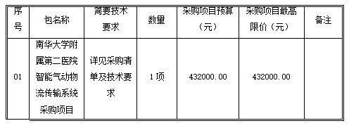 南华大学附属第二医院智能气动物流传输系统采购项目公开招标公告